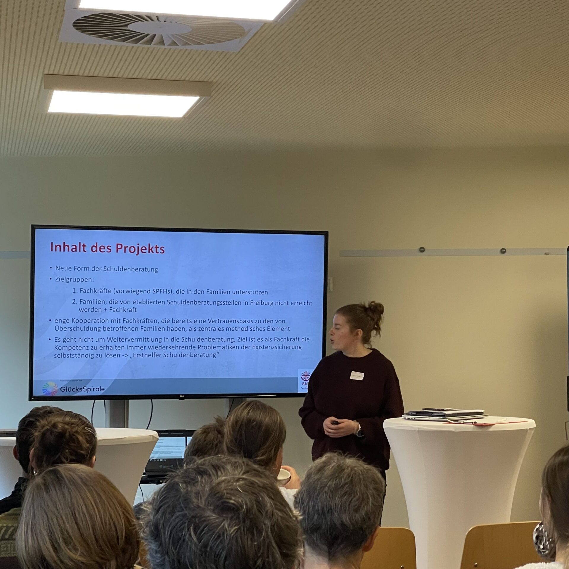 In Kleingruppen-Workshops beleuchteten die teilnehmenden Fachkräfte die vielfältigen Herausforderungen, die sich ihnen bei dem Thema stellen. Dr. Christoph Mattes von der Fachhochschule Nordwestschweiz präsentierte in einem kurzweiligen Fachvortrag fundierte Studienergebnisse und praxisrelevante Erkenntnisse mit einem perspektivenreichen Überblick über die komplexe Materie. Ein Vortrag mit Diskussionsrunde unter Leitung unseres Fachteams zeigte mit unserem Projekt der „Kooperativen Schuldenberatung“ innovative Wege auf, wie das neue Kooperationsangebot aus dem SkF-Labor Fachkräfte anderer Einrichtungen in Freiburg und Umgebung dabei unterstützen kann, Familien aus der Schuldenfalle zu begleiten.